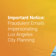 Los Angeles City Planning has been made aware of fraudulent emails being sent from a fake email account: planning.lacity.org@usa.com. Please be advise...